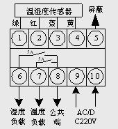 無源輸出:端子6、8為濕度開關(guān);端子7、8為溫度開關(guān);8為公共端;